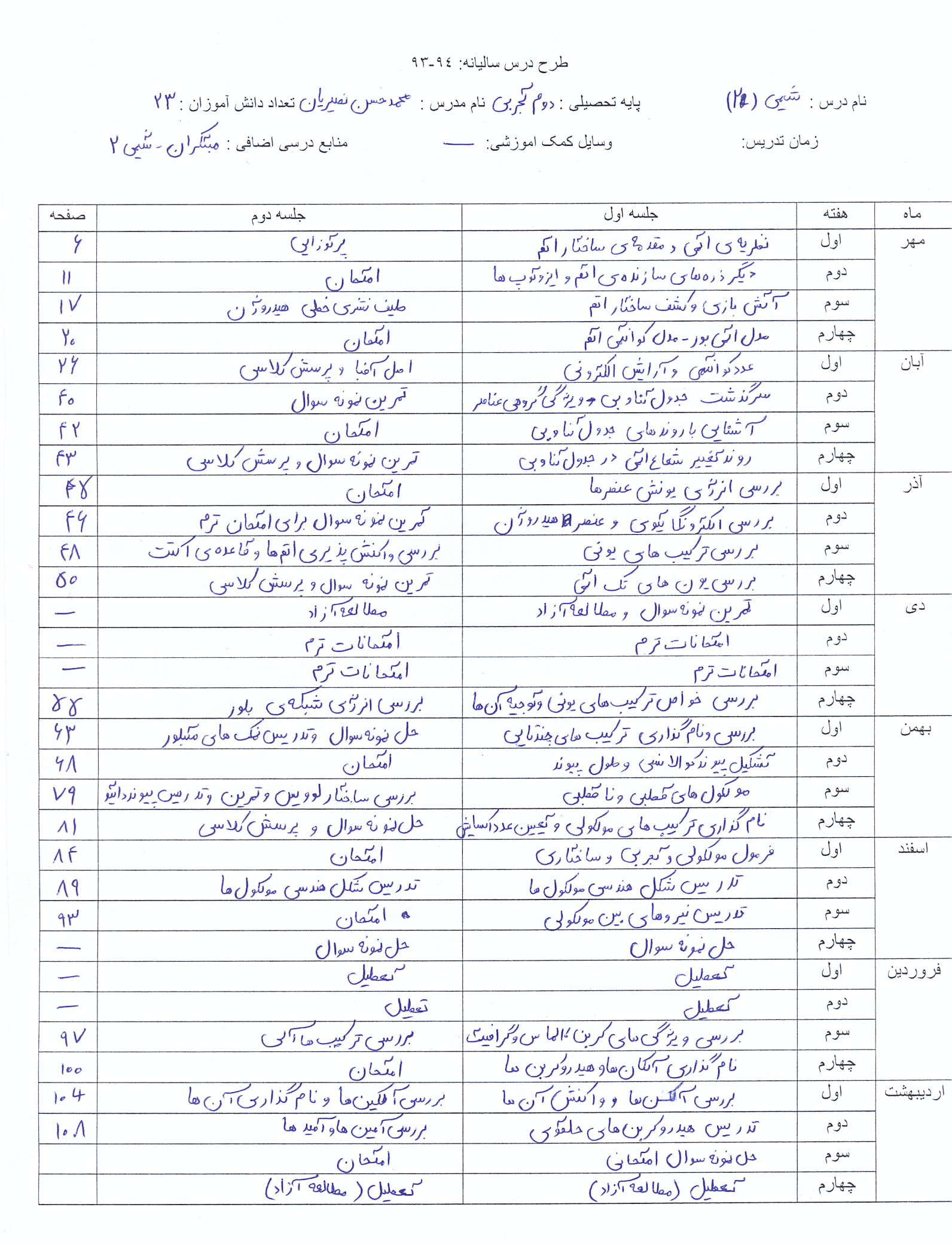 پایه دوم علوم تجربی کلاس 202