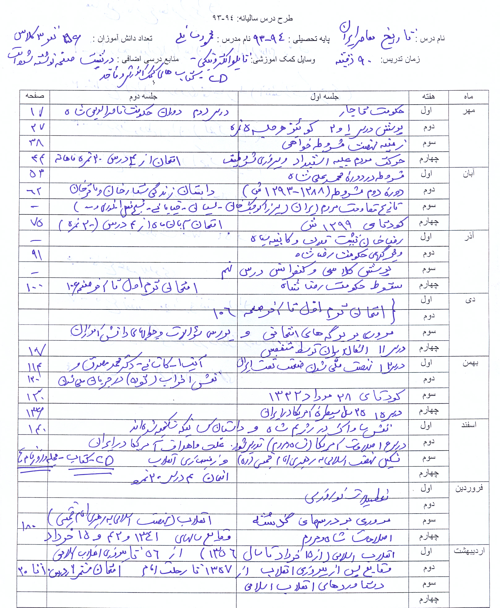 پایه سوم علوم تجربی کلاس 303