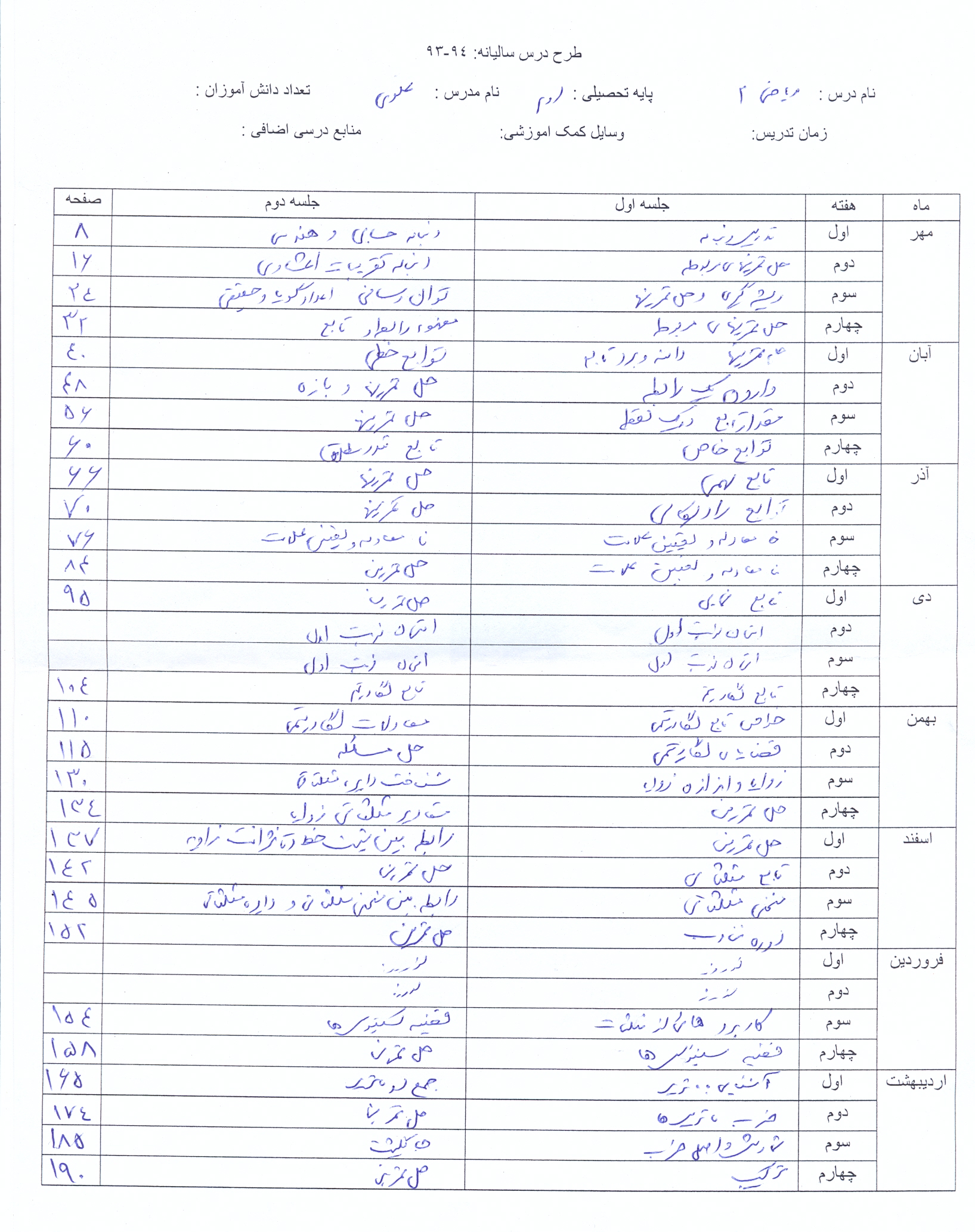 پایه دوم ریاضی فیزیک کلاس 201